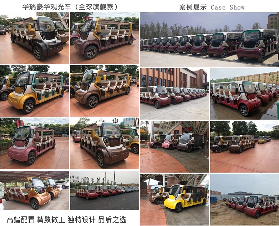 益高華瑞觀光車定位于高層觀光車市場,出口到歐美多個,整車外觀造型優(yōu)雅簡約,內飾設計精致大氣,整車根據人機工程學人性化設計,舒適安全,將舒適的乘坐空間容納于精巧車身。皮革座椅工藝,抗氧化防紫外線,防水防潮,堅實耐用;交流電器系統(tǒng),動力更強勁,續(xù)航更持久; EPS電動助力轉向、真空助力制動系統(tǒng)、益高標配五輻鋁合金輪轂……傾盡高配置。